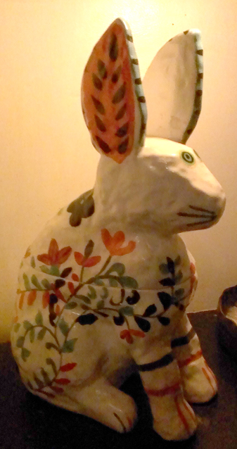 -On the other side of the bar there was a niche in the wall that held a little ceramic bunny rabbit, painted white with flowers. When I first saw it a mother was showing it to her toddler and the toddler clearly wanted very much to eat it.