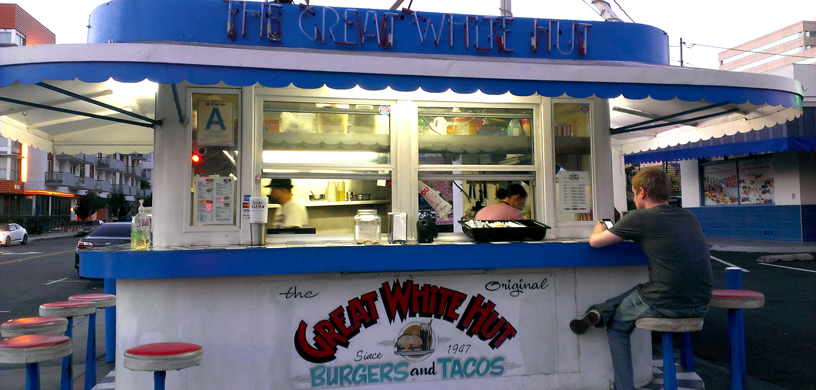 Went with David (my husband) to The Great White Hut. There’s something I love about burger stands, they’re so compact and self-contained.