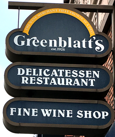 ysignGreenblatts027I’d been to Greenblatt’s Deli before, but not recently, and I hadn’t written about any places in Hollywood in a while, so I decided to head over for lunch. I always like that section of Sunset because I stayed very near there on my first ever trip to L.A., more than twenty years ago. I remember going for a long walk right past there, but I think I was more interested in looking at the Laugh Factory next door than at Greenblatt’s; at least I don’t remember it. The front of Greenblatt’s is all brick and carved stone, a really gorgeous old building, but someone put a gigantic, garish digital sign on the front of it. I wish they hadn’t, but I suppose if it attracts business that they need to stay open it’s worth it?