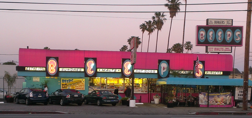 Beeps had been described to me as a diner, but it’s really more of a sandwich/burger stand with a tiny indoor eating area and a slightly less tiny patio. The counter has an order window both on the inside and the outside, and if you’re eating there they’ll bring you your food.